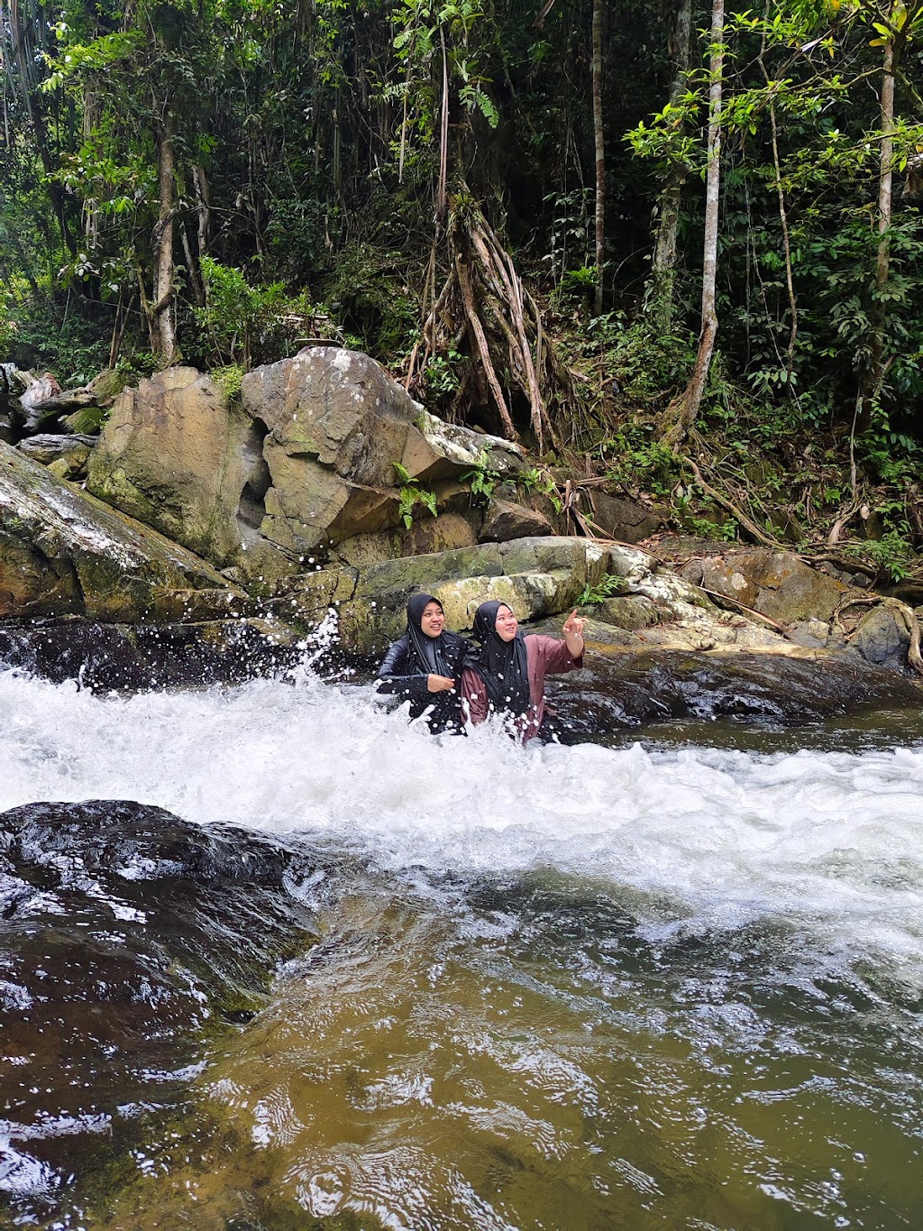 - Berendam di kolam alami di bawah air terjun.